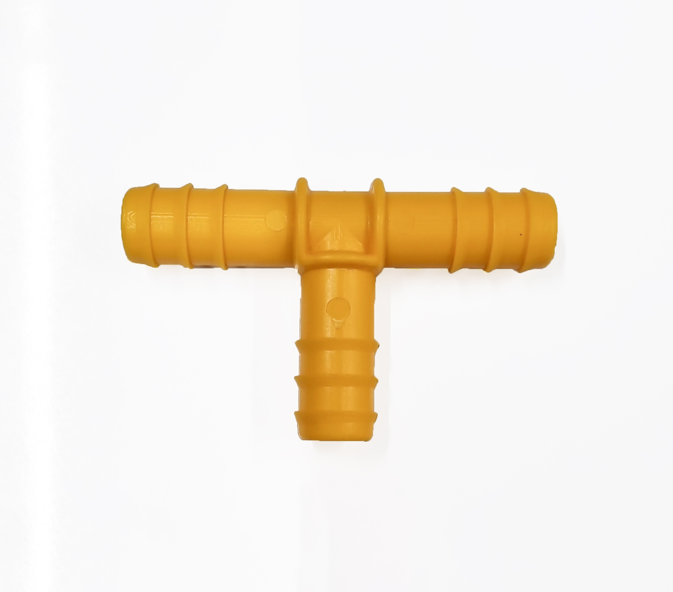 Tee Barbed Connector / 16 mm is used to form "T" shaped connector between round drip irrigation lateral tube with diameter 16 mm.